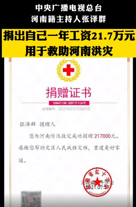 这次事件还要追溯到河南的7.20特大暴雨,河南水灾发生后,牵动着全国人民的心,一些河南籍的名人明星更是积极捐款捐物,支援家乡灾后重建。张泽群作为河南籍的央视主持人,也捐了21.7万。河南大暴雨后,新一轮的新冠疫苗从郑州快速传播到多个省区市,目前,河南省已启动四轮核酸检测,同时河南多个地区严防疫情,努力打赢疫情防控阻击战。