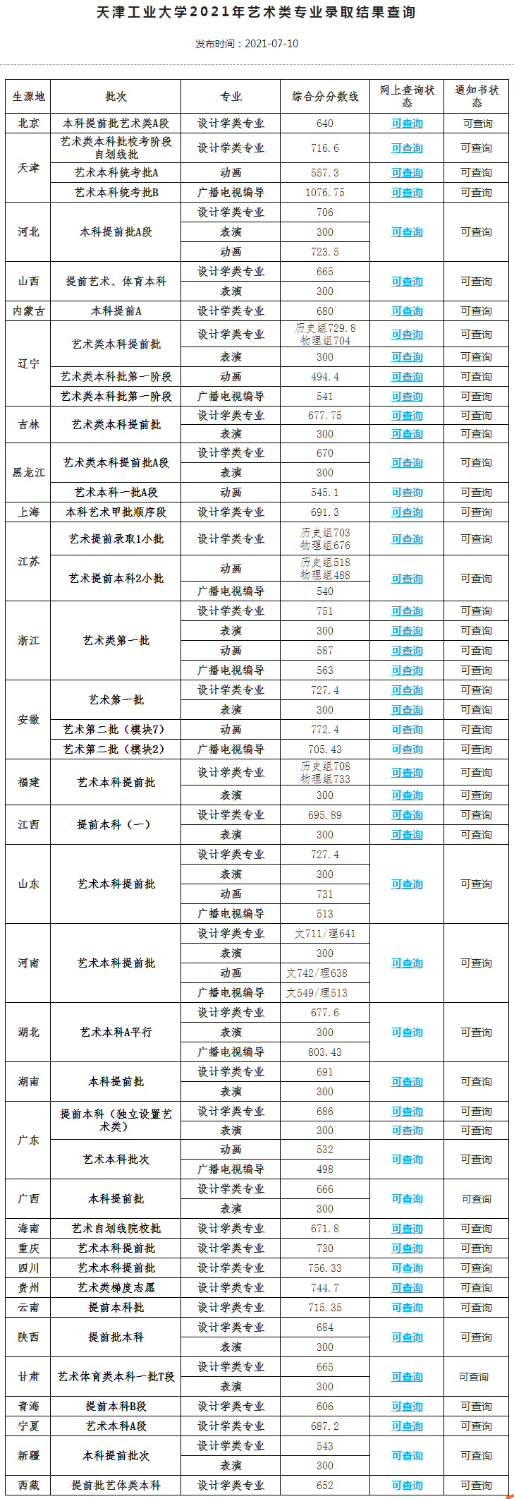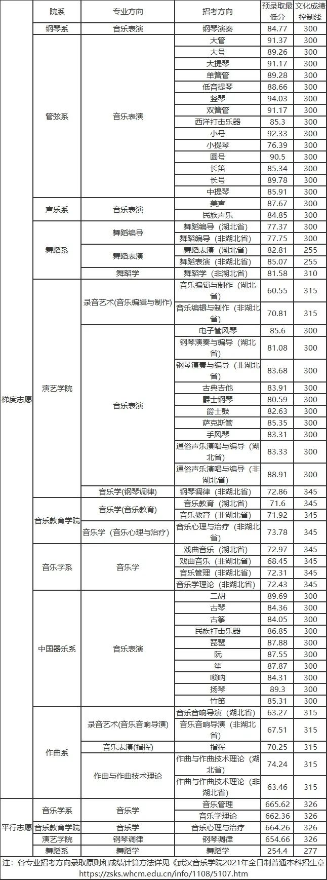 下划线字体为已公布2021文化录取控制线的院校,但未公布录取分数线,10所;