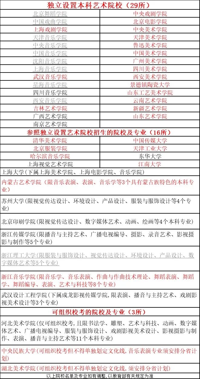 这个名单网上版本很多,本文所采取的是河北省教育考试院在2020报考指南中公布的院校。(2021版去除了四川音乐学院,但四川音乐回归只是时间问题,而且今年只是取消校考,依然在A段中招生)