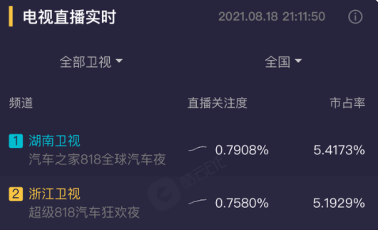 ,为观众带来一场视听盛宴,两台晚会分别是湖南卫视818全球汽车之夜和浙江卫视818汽车夜。
