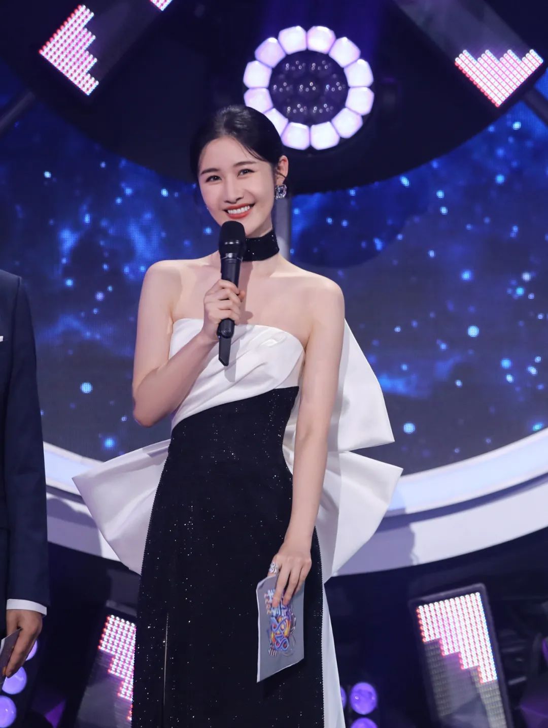 场大屏幕出现了小故障,梁田再一次发挥了自己救场的能力,表现大气从容。