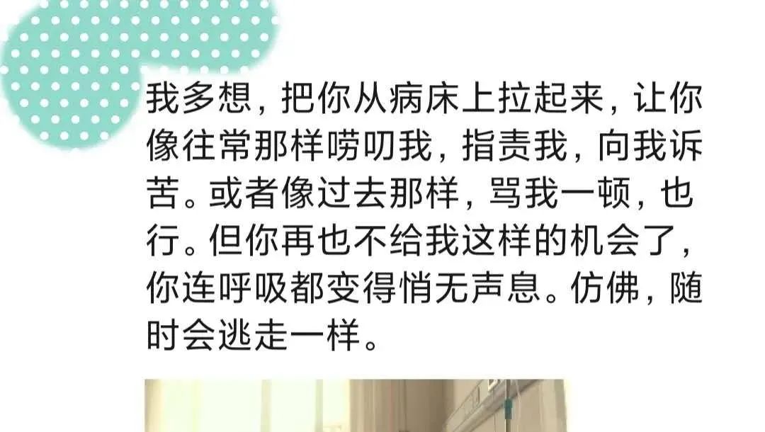 “父亲,你一辈子给了我很多。 我想最后再要一点,要你一个清醒的笑容,一个确凿的认可,一声安慰,一声原谅,一个父子情深的拥抱。 可你没有,父亲,你就那么走了。”