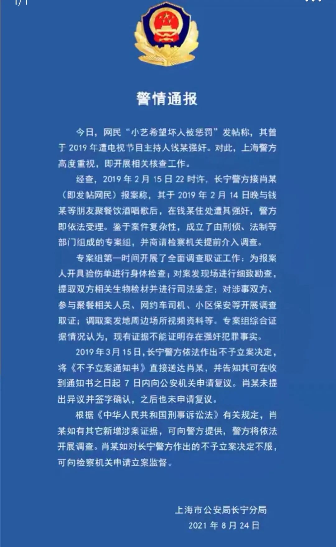 但因为提供的证据不足,警方不予立案。