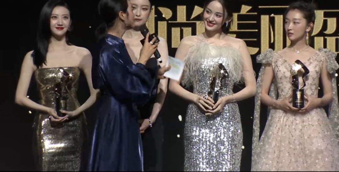 李莎旻子首次以簪花造型主持音乐盛典,主持中途突下大雨