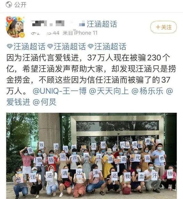 汪涵还给某金融理财平台做代言,结果该平台经举报发现有几十万人被骗,就是因为有人相信了汪涵才愿意去买,却没想到产品这么坑人。