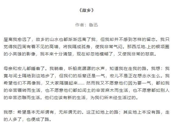 自备稿件:《故乡》