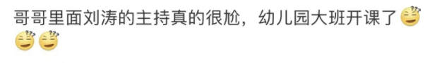 有网友称刘涛在哥哥里面的主持十分尴尬,像幼儿园大班开课了。