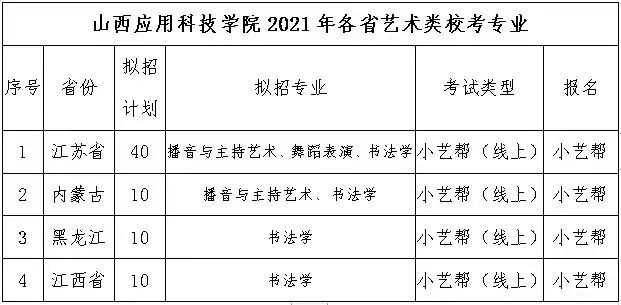 凡我校组织艺术校考的省份,播音与主持艺术、书法学、舞蹈表演三个专业,高考文化课成绩达到本省艺术类相应批次录取控制分数线,按我校专业课校考成绩由高分到低分择优录取。
