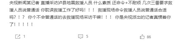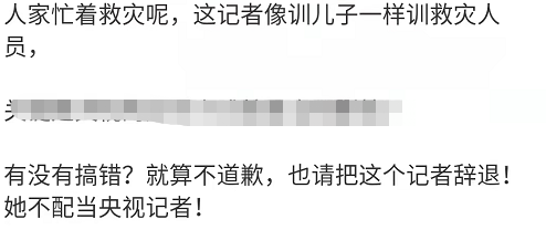 也有网友爆料说:是女记者事先与救援人员沟通时说的四川话,开拍的时候采访对象没转换过来,结果她还急了。何止是不专业!
