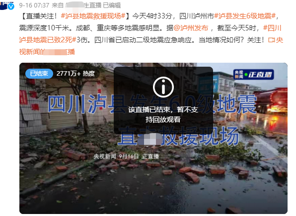 由于四川泸州市泸县暴发6.0级地震灾害,因此“央视新闻”下派记者前往受灾地区访谈,并掌握当地的状况。