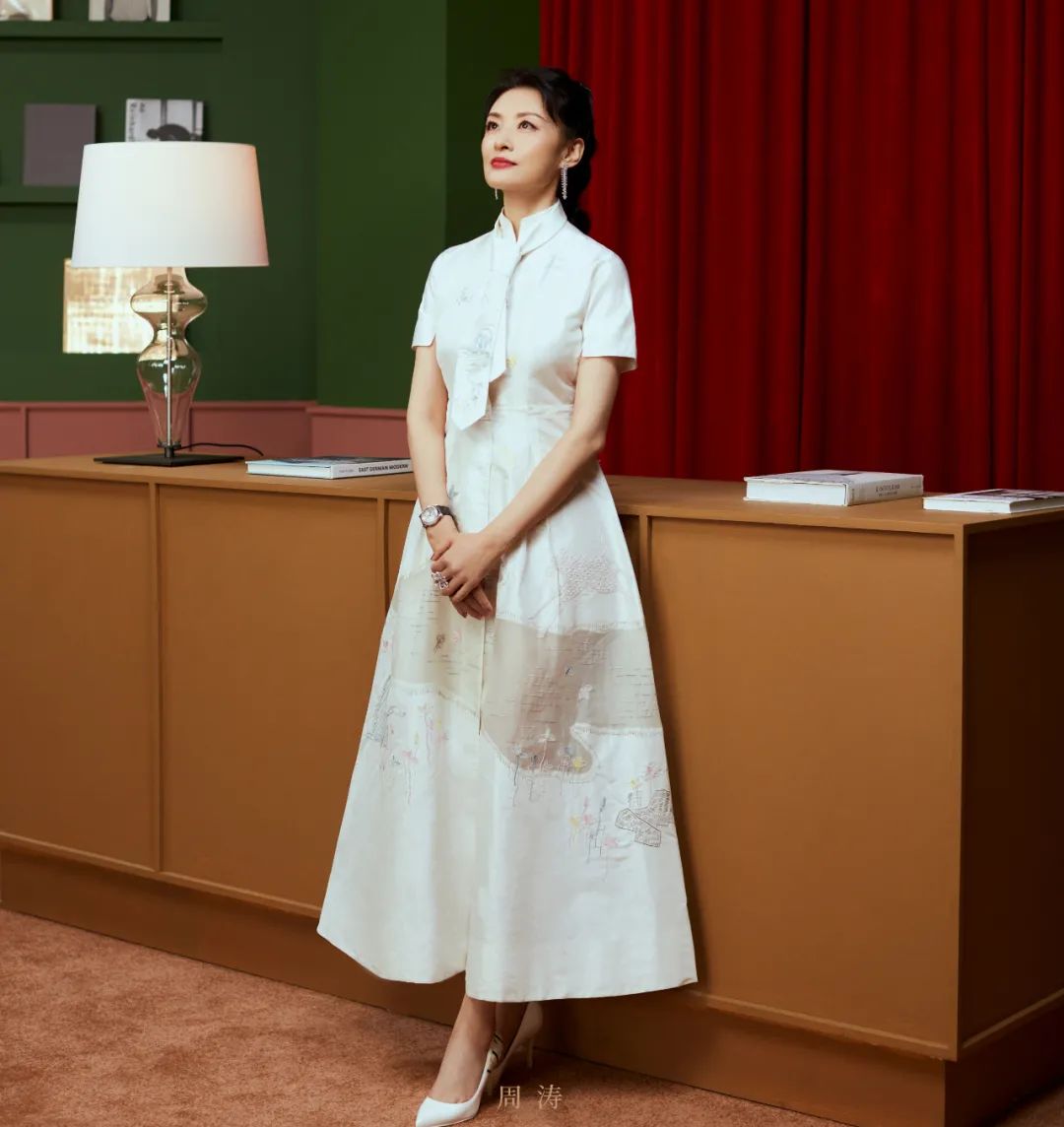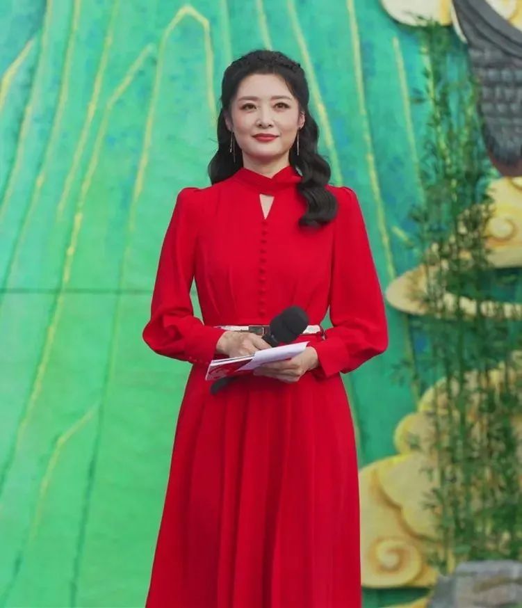 周涛一袭红裙,依旧美丽大方,端庄典雅。