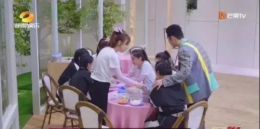 只有吴昕放下了筷子,站起身帮丁当盛饭。