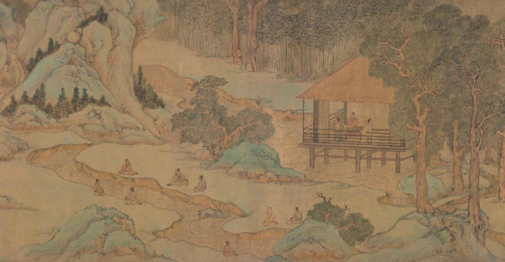 永和九年,岁在癸丑,暮春之初,会于会稽山阴之兰亭,修禊事也。群贤毕至,少长咸集。此地有崇山峻岭,茂林修竹,又有清流激湍,映带左右,引以为流觞曲水,列坐其次。虽无丝竹管弦之盛,一觞一咏,亦足以畅叙幽情。