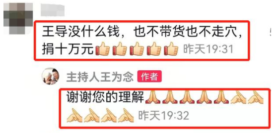 作为主持人王为念因为捐款数额不高,引来一些争议,但也让不少网友都表示感谢,还有网友在评论区为其说话,