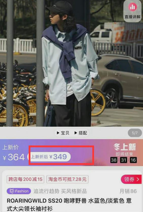 通过截图可以看到,沈梦辰在自家店铺卖的某潮牌衬衫,原本标价是2999元,现在改为900元,