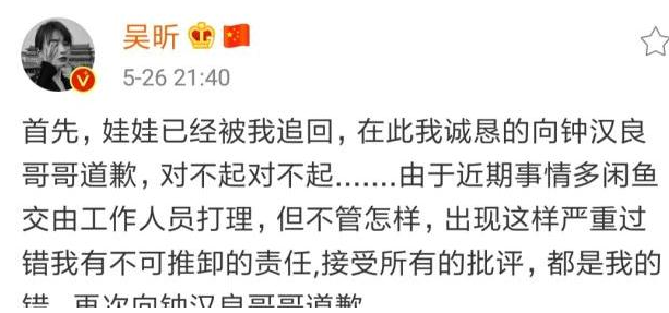 随后,吴昕立刻将娃娃下架,并公开表明由于近日工作繁忙,将账号交给别人打理,工作人员一时大意才将婚纱熊猫拿去卖。但即便是公开正式道歉,但网友们似乎并不买账,指责声越演越烈。