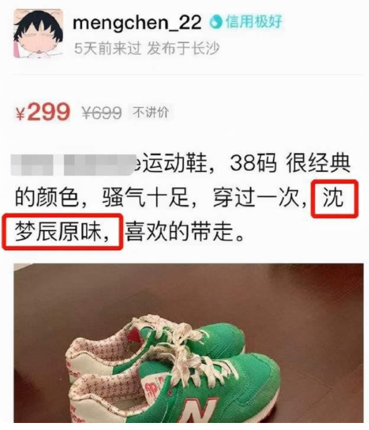 其实,沈梦辰可以说是早就把售卖二手物品当成副业一样去经营了,在闲鱼上卖过很多东西,甚至一些还标有“沈梦辰原味”,