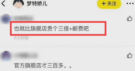 定价比旗舰店高3倍还不包邮的看法