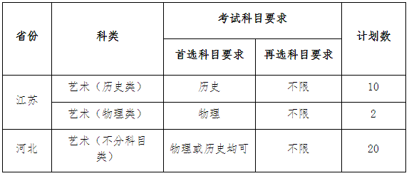 江苏省12人,河北省20人,湖南省8人。江苏省和河北省为校考。湖南省考生须参加湖南省组织的播音与主持类专业统考。