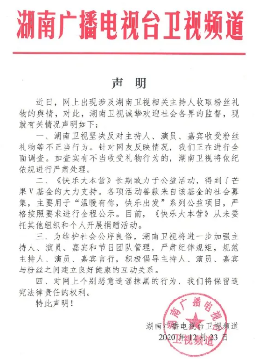 去年,何炅因为私下收礼一事被推到风口浪尖,