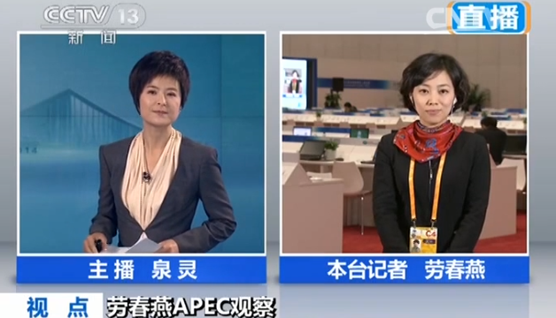 △2017年两会期间,天气很冷,温度只有2度,但劳春燕依然出色完成了任务,担任几次重要直播的开场连线。
