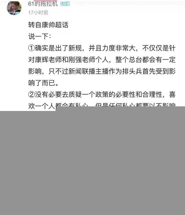 这不仅仅是针对康辉和刚强个人,而是整个总台都会受到一定的影响。只不过新闻联播的主播,其代表着的不单是个人,更是象征着我国权威信息的输出。作为排头兵,就必须要做好表率,带头作用。至于之后康辉还没有播出的文化类节目,大概率也不会再有尽头。