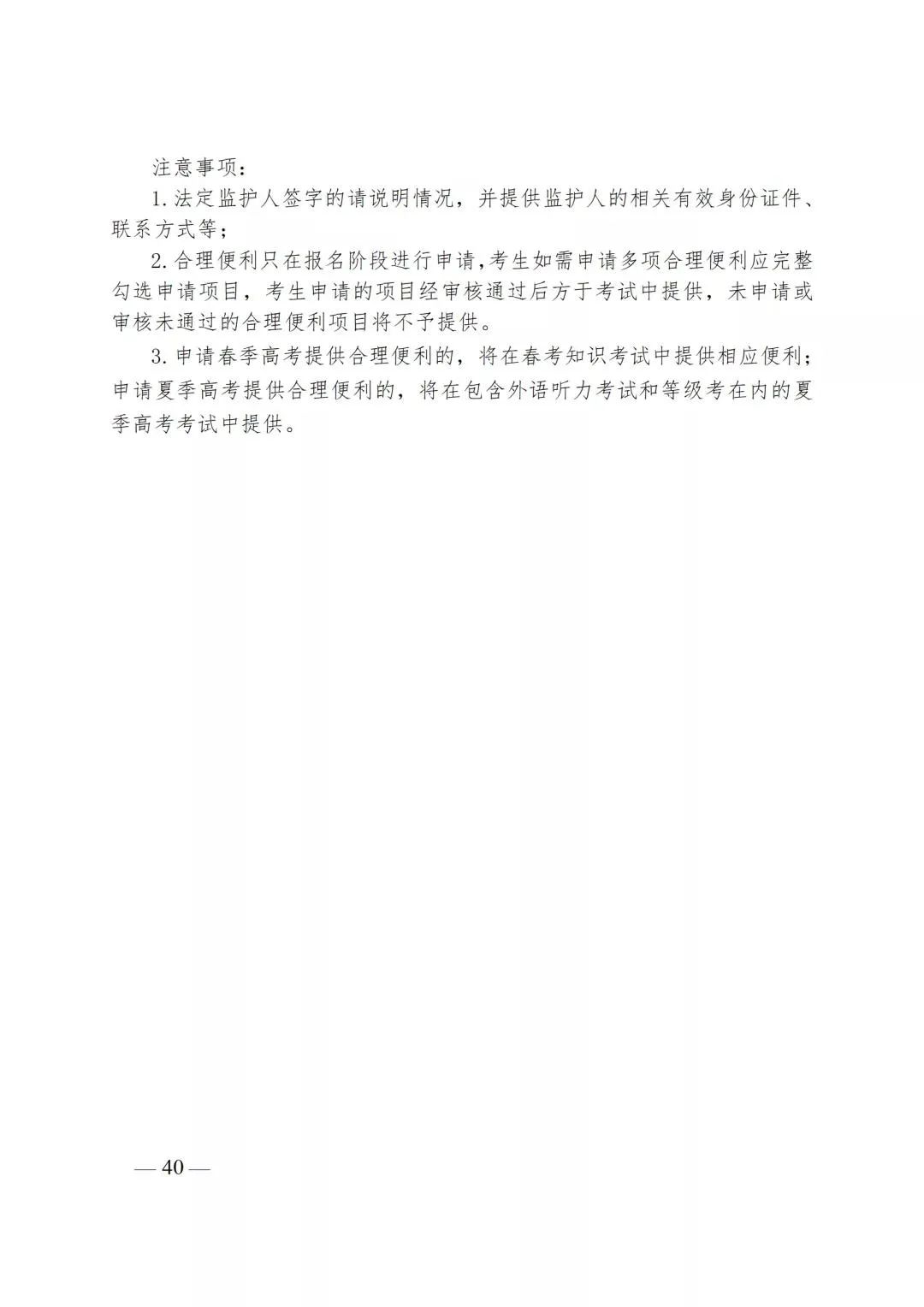 合理便利只在网上填报信息阶段申请,考生如需申请多项合理便利应完整勾选申请项目。考生申请的项目经审核通过后于考试中提供,未申请或审核未通过的项目将不予提供。申请春季高考合理便利的,将在春考知识考试中提供相应便利;申请夏季高考合理便利的,将在包含外语听力考试和等级考试在内的夏季高考考试中提供。