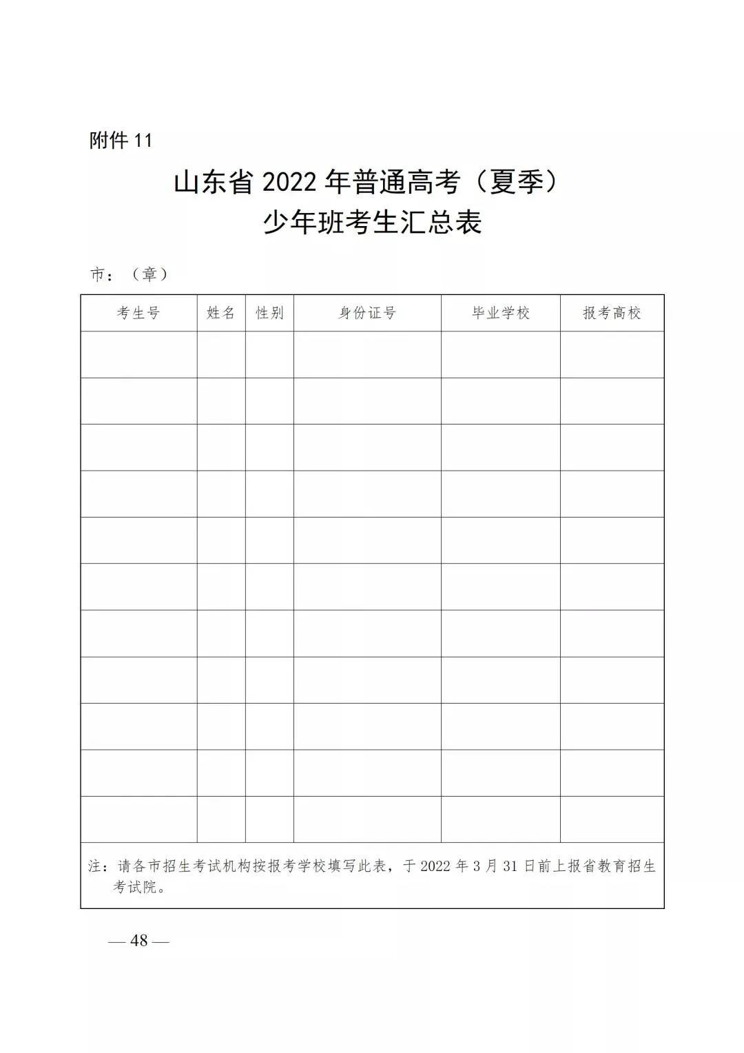 附件11:山东省2022年普通高考(夏季)少年班考生汇总表