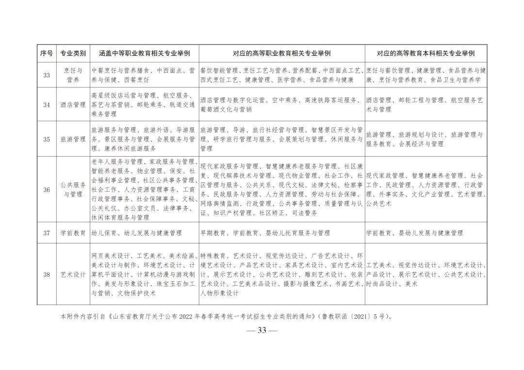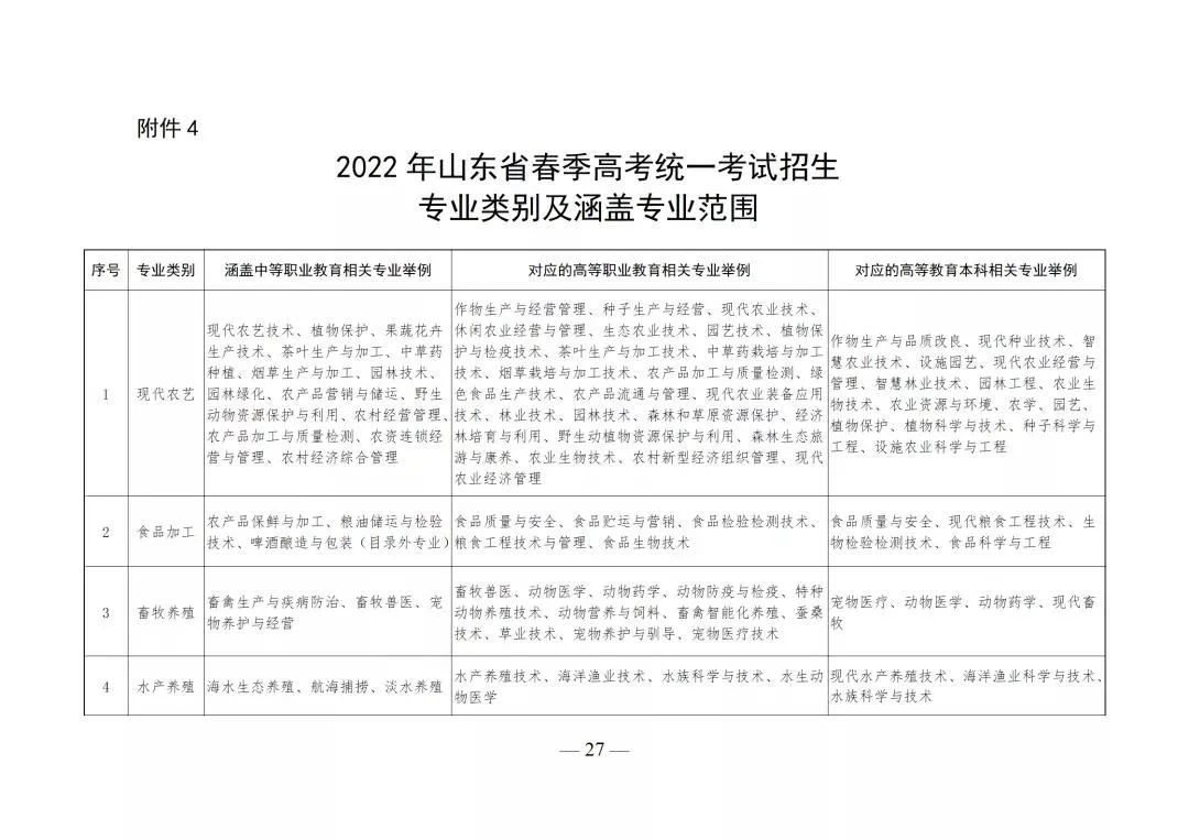 4.山东省2022年春季高考统一考试招生专业类别及涵盖专业范围