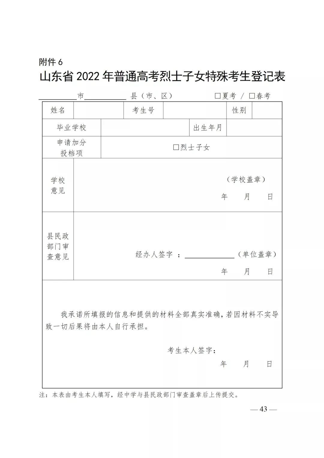 6.山东省2022年普通高考烈士子女特殊考生登记表