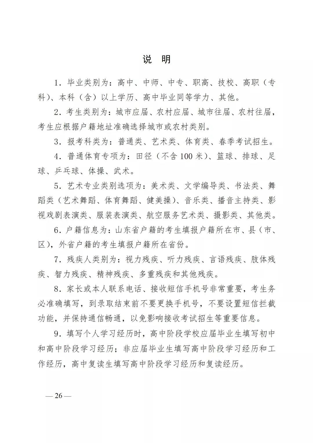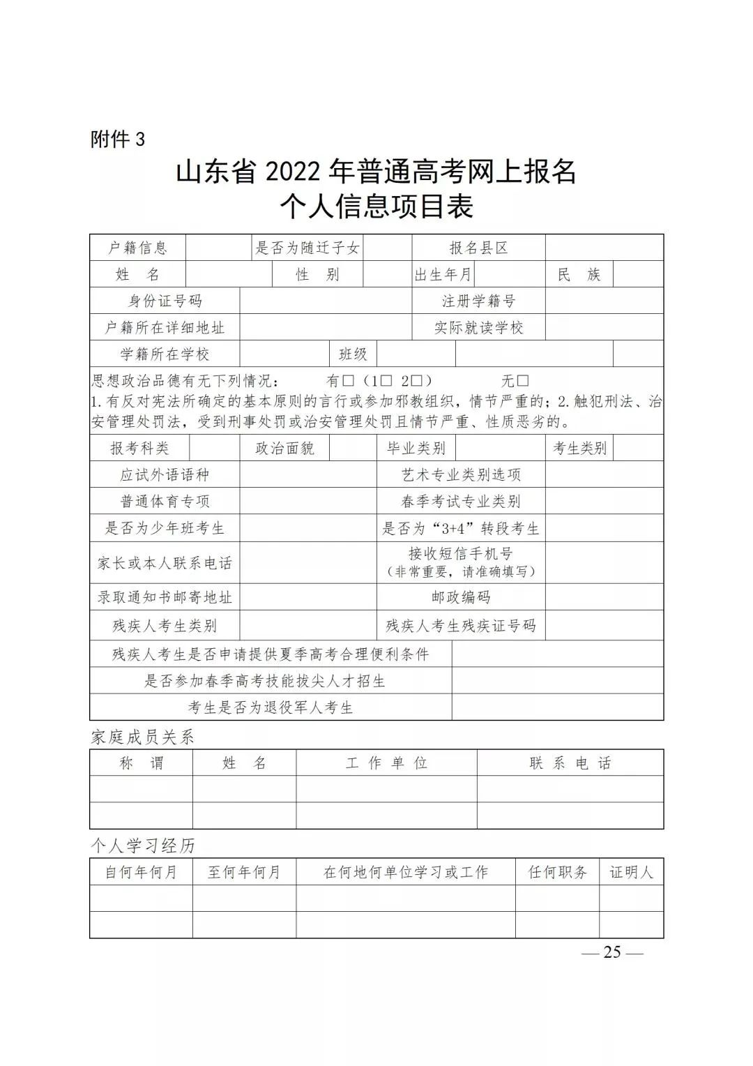3.山东省2022年普通高考网上报名个人信息项目表