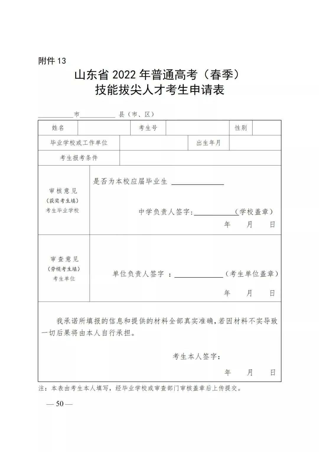 13.山东省2022年普通高考(春季)技能拔尖人才考生申请表