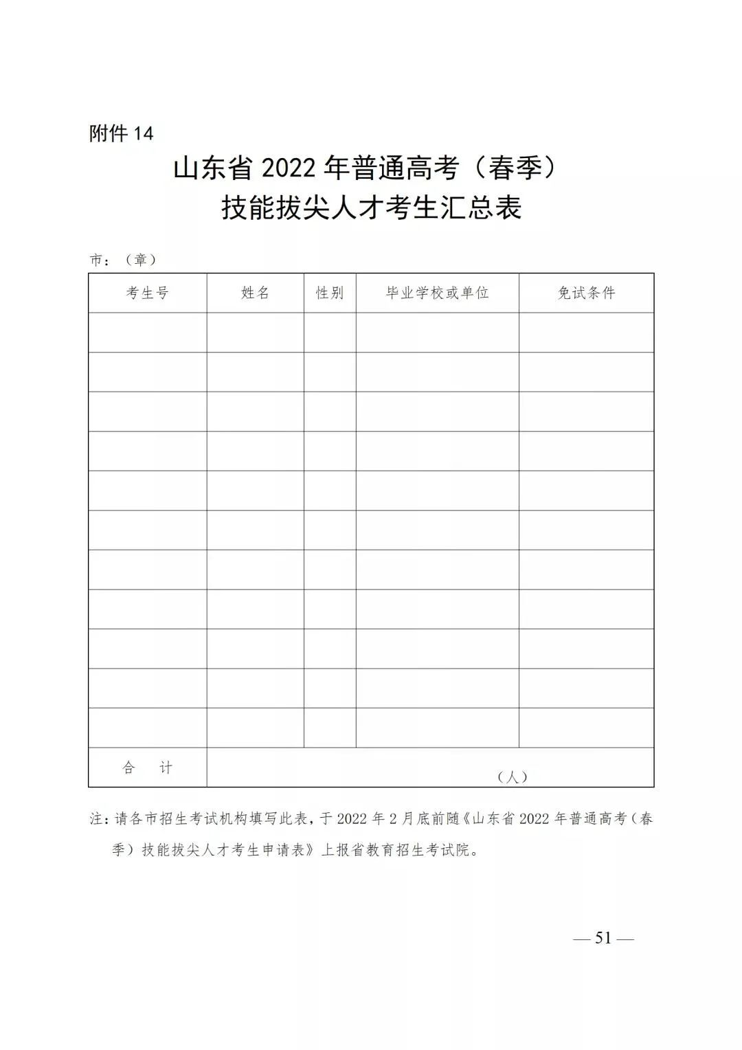 附件14:山东省2022年普通高考(春季)技能拔尖人才考生汇总表