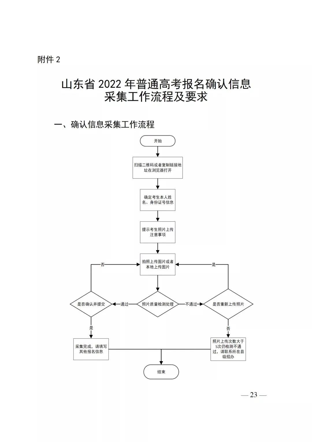 附件2:山东省2022年普通高考报名确认信息采集工作流程及要求