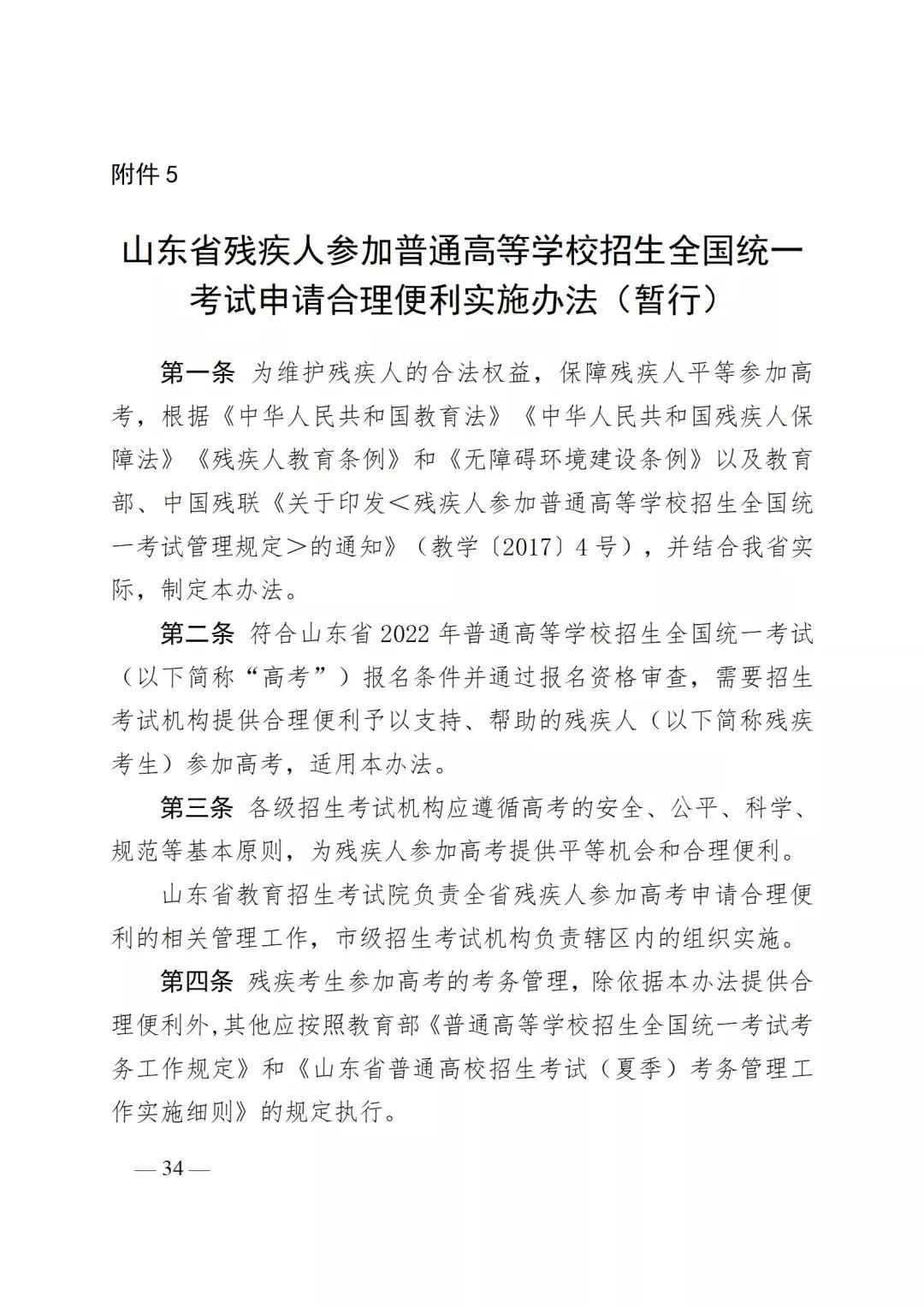 5.山东省残疾人参加普通高等学校招生全国统一考试申请合理便利实施办法(暂行)