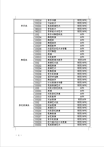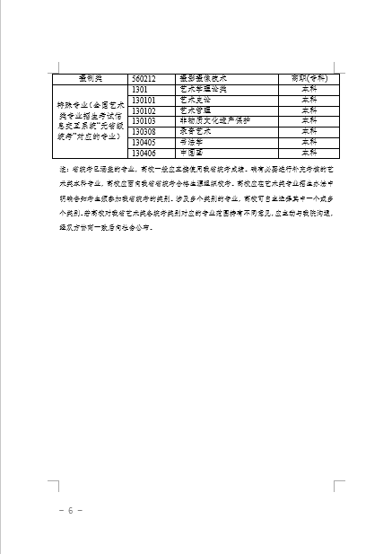 3.高校应在艺术类专业招生办法中明确告知考生须参加我省统考的类别。若高校对我省艺术类各统考类别对应的专业范围(见附件1)持有不同意见,应主动与我院沟通,经双方协商一致后向社会公布。对于美术学类和设计学类专业,除经教育部批准的部分独立设置的本科艺术院校(含部分艺术类本科专业参照执行的少数高校)外,高校不再组织校考。
