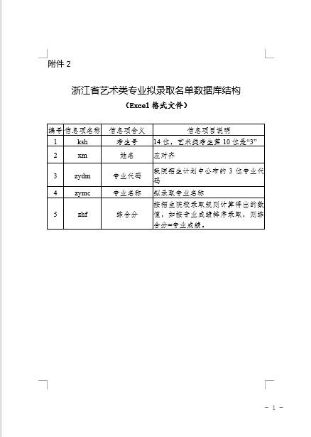 附件2 浙江省艺术类专业拟录取名单数据库结构