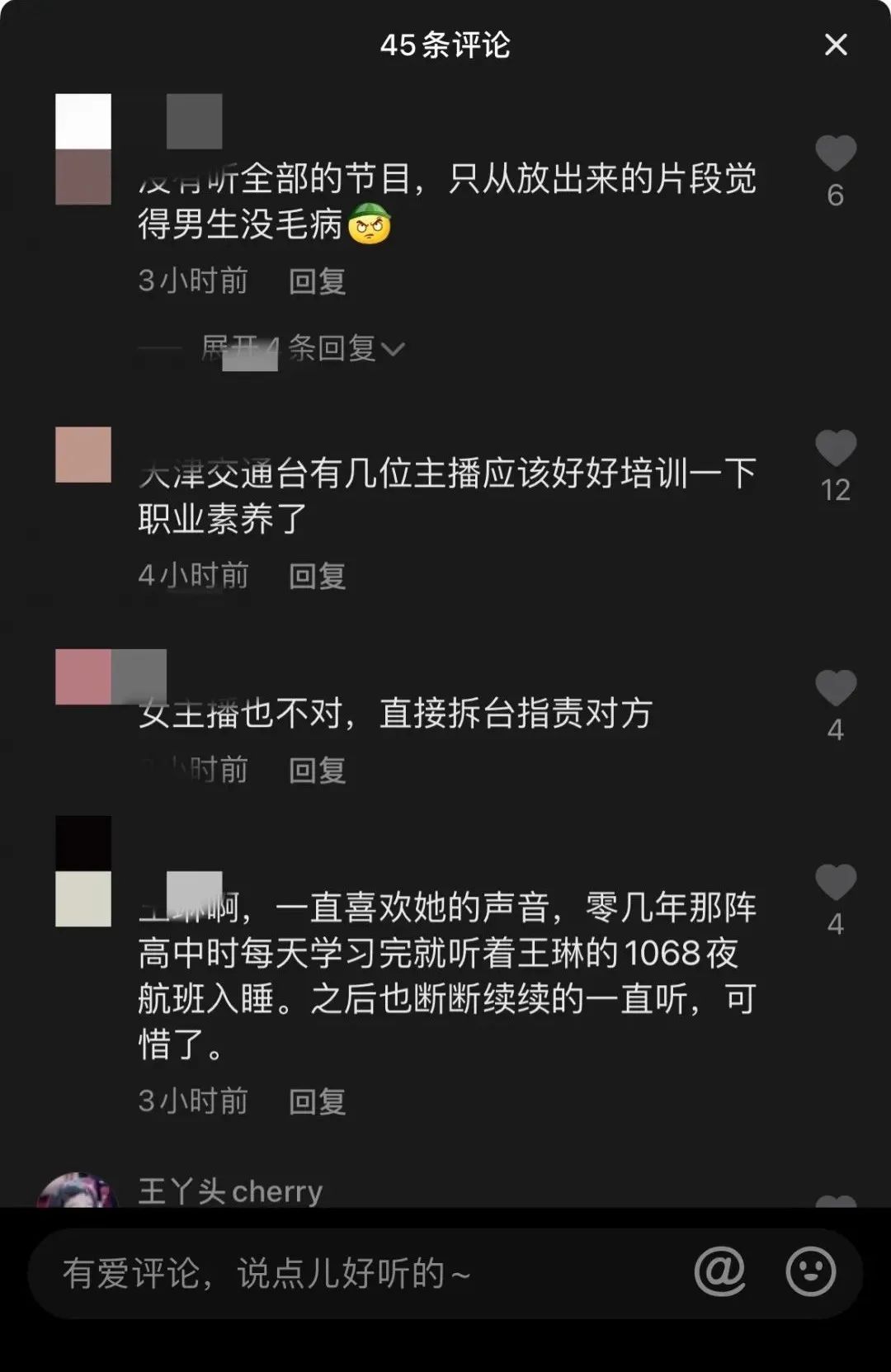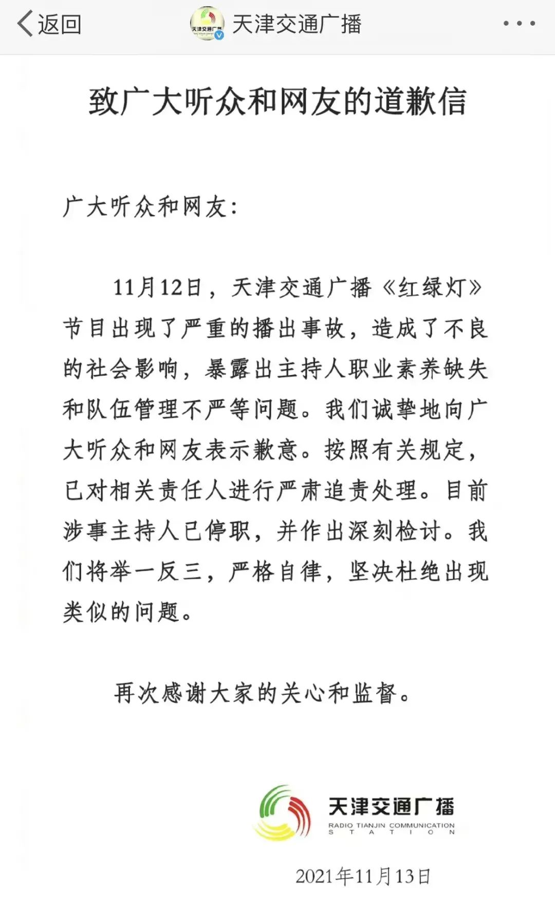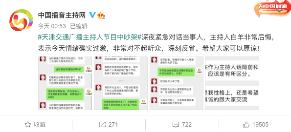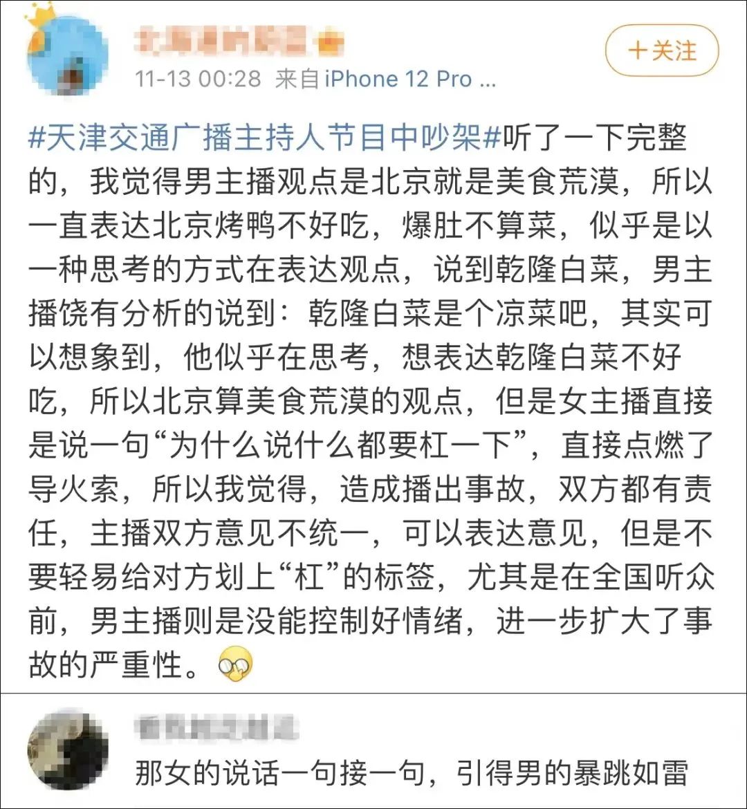 发生播出事故的,是天津交通广播在工作日早上9点直播的一档交通类闲聊节目《红绿灯》,主要受众是司机群体。