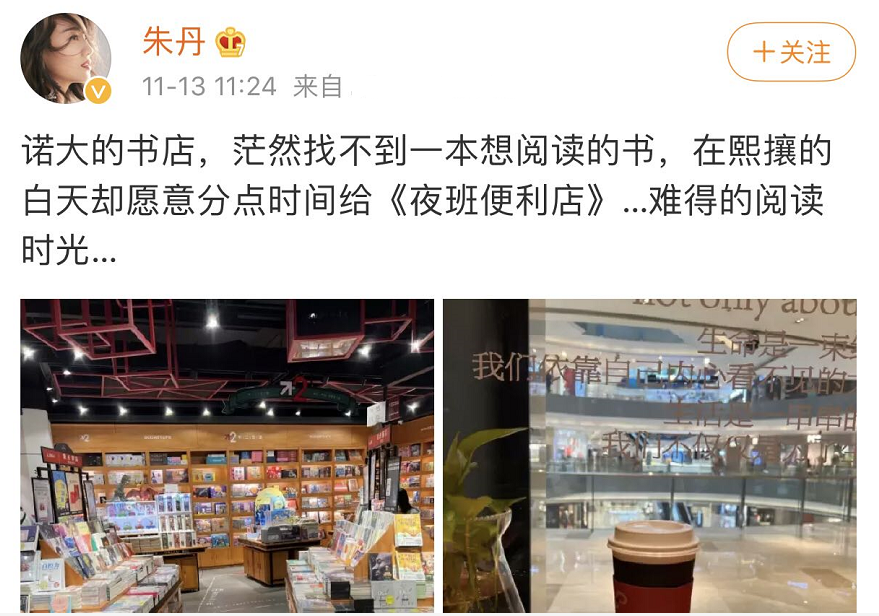 近日,著名主持人朱丹在社交平台上晒出一组自己近期前往书店阅读的打卡照,并配文透露这是难得的阅读时光,