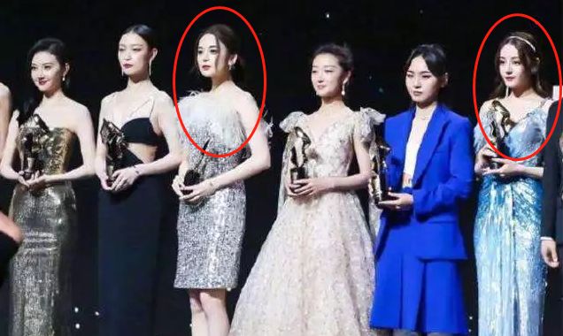 娜扎(左红圈)和热巴(右)中间仅隔两人