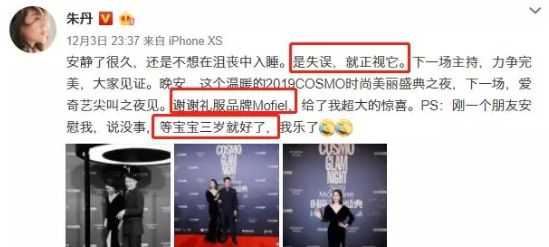 事后朱丹连发三条微博认错,让“一孕傻三年”背锅。