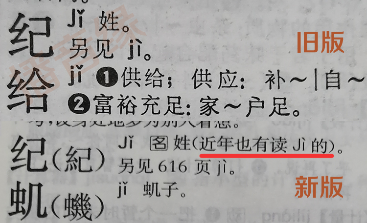 新版《现代汉语词典》中对“纪(jǐ)姓”这个字,则加了一句特别的注释“