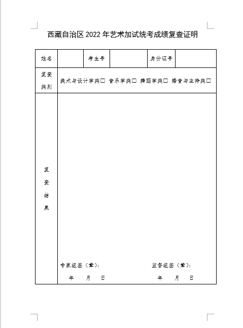 4.西藏自治区2022年艺术加试统考成绩复查证明