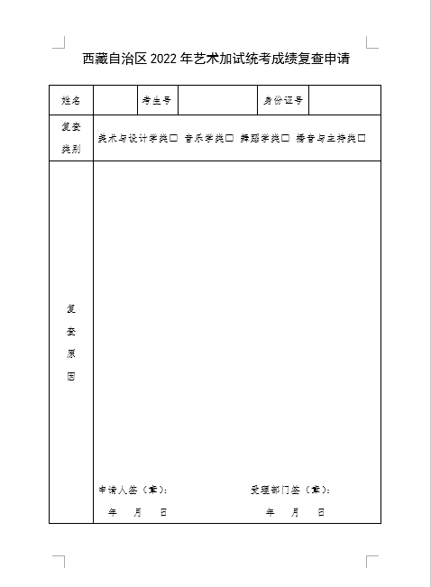 附件3 西藏自治区2022年艺术加试统考成绩复查申请
