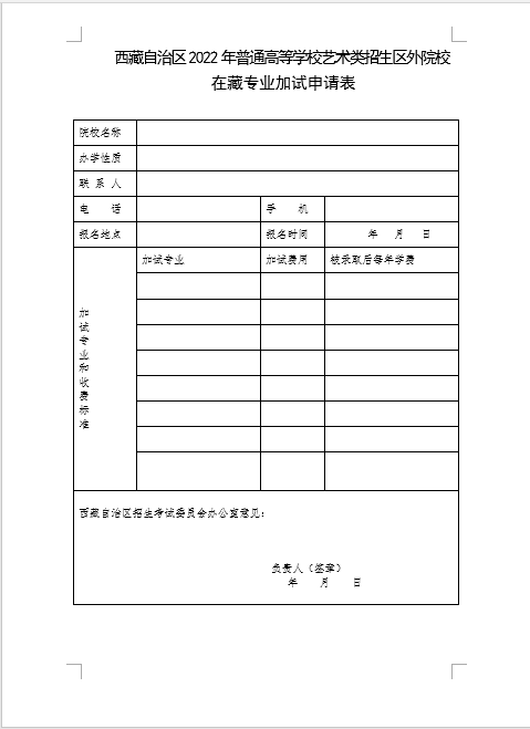 2.西藏自治区2022年普通高等学校艺术类招生区外院校在藏专业加试申请表