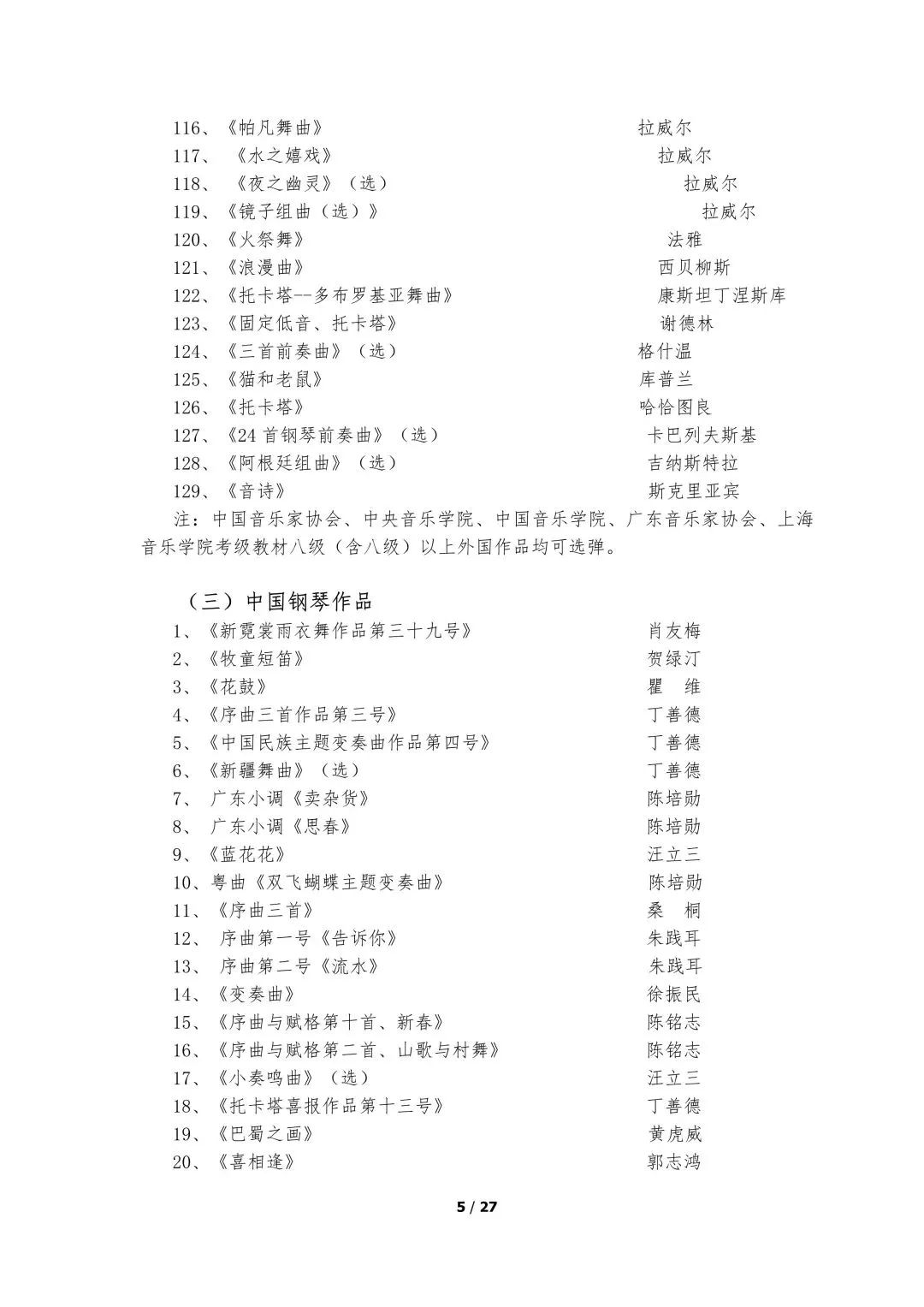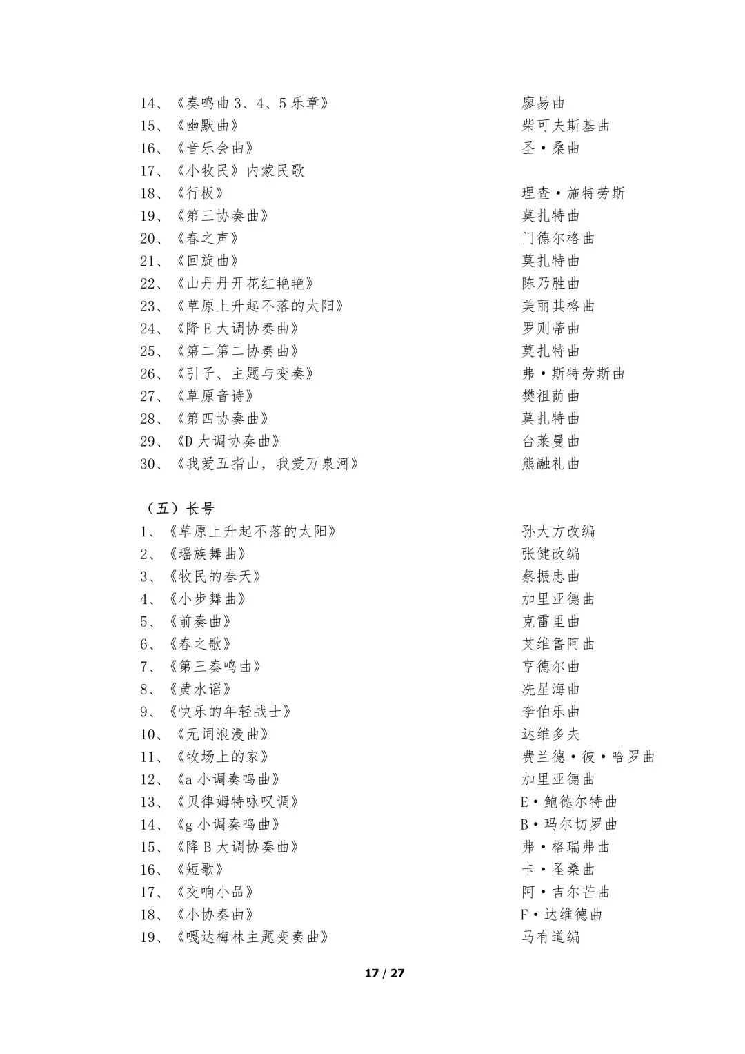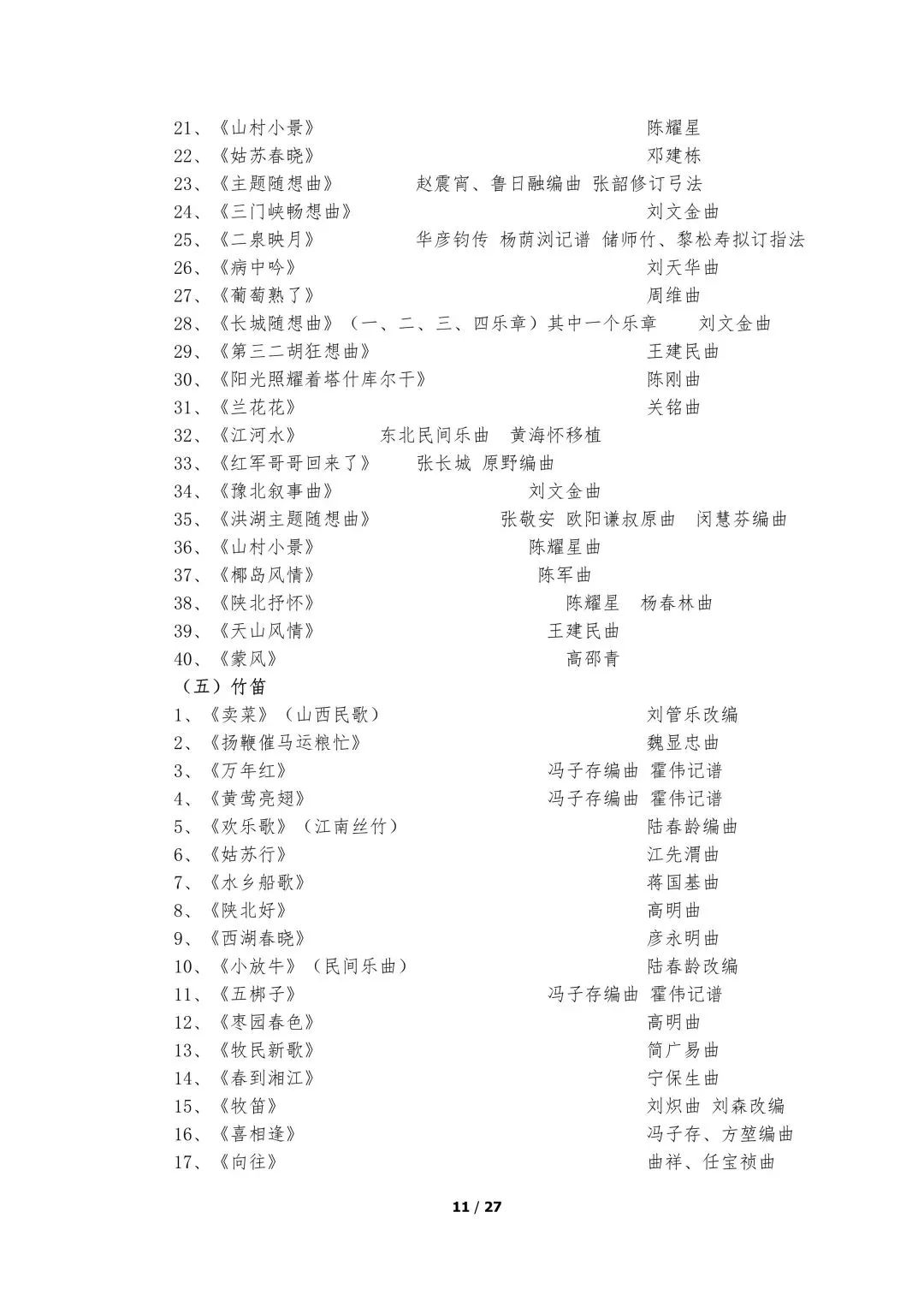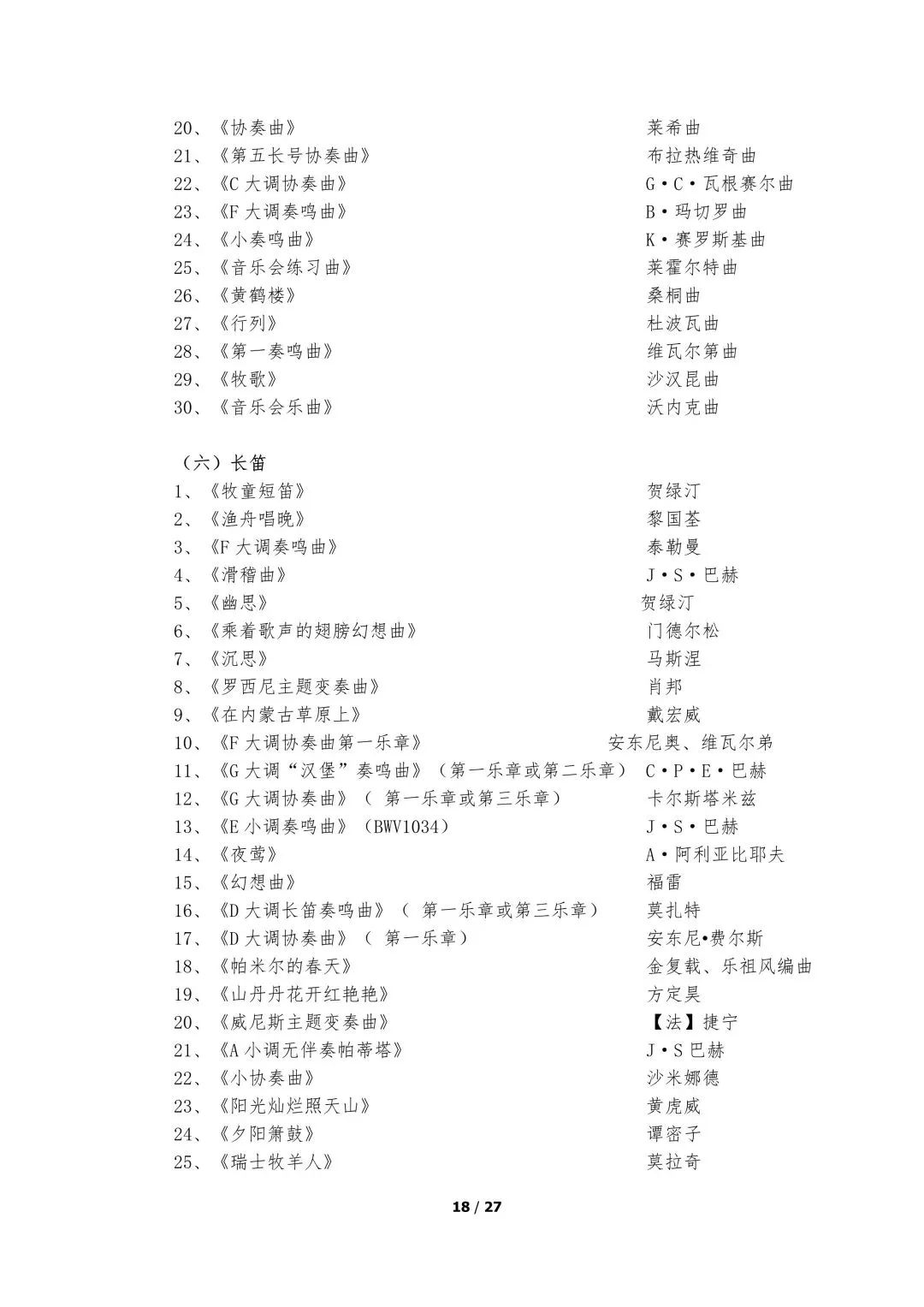 5.器乐类考试的面试考场备有钢琴,其他乐器考生自备。器乐演奏实行无伴奏演奏,要求背谱演奏。