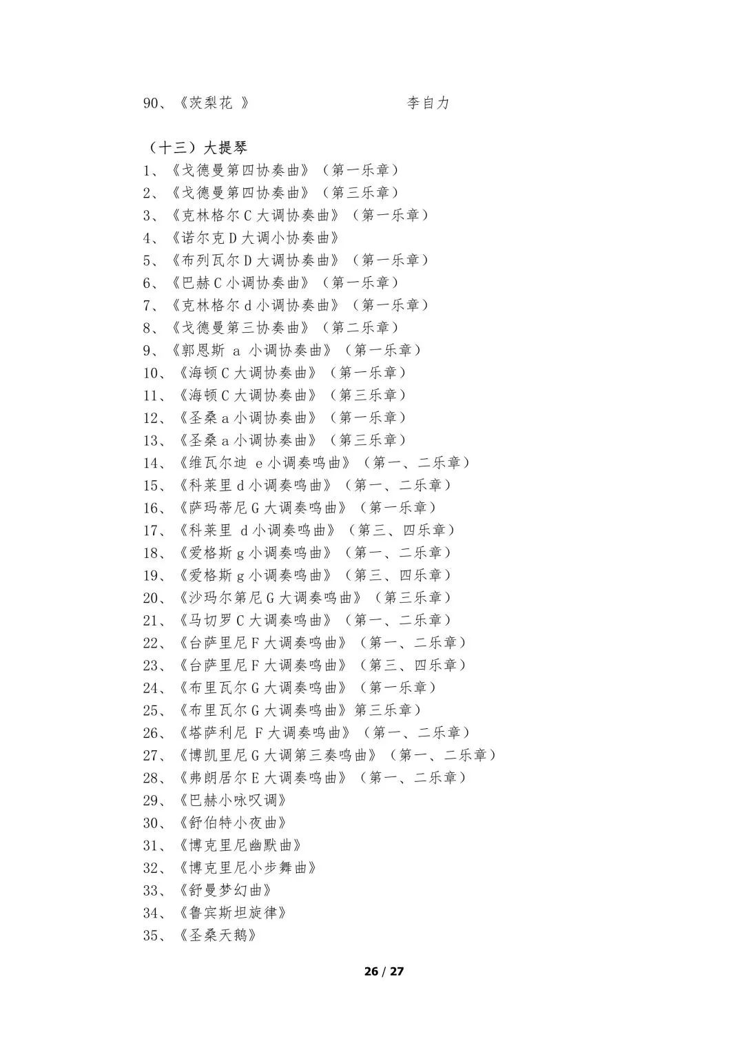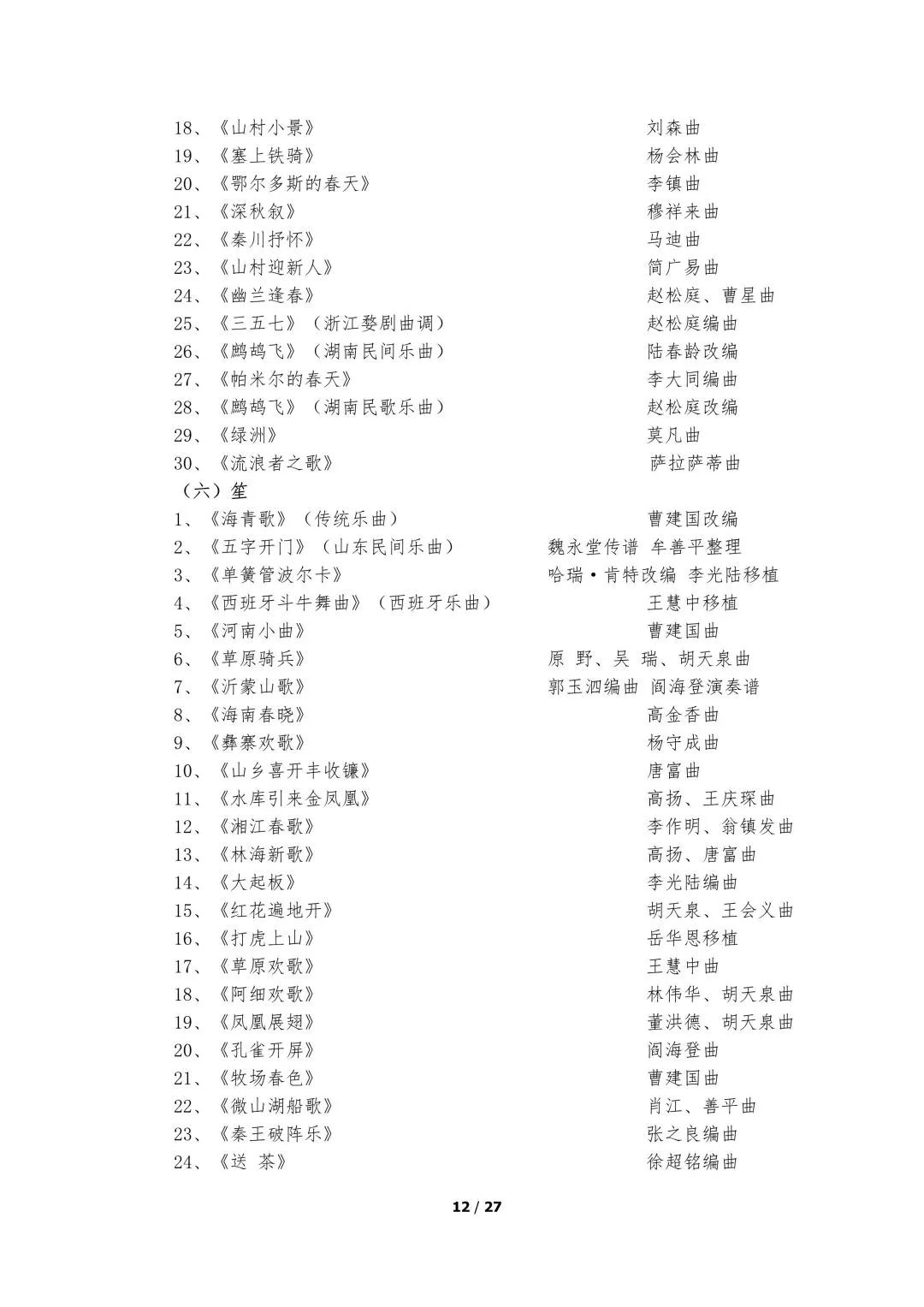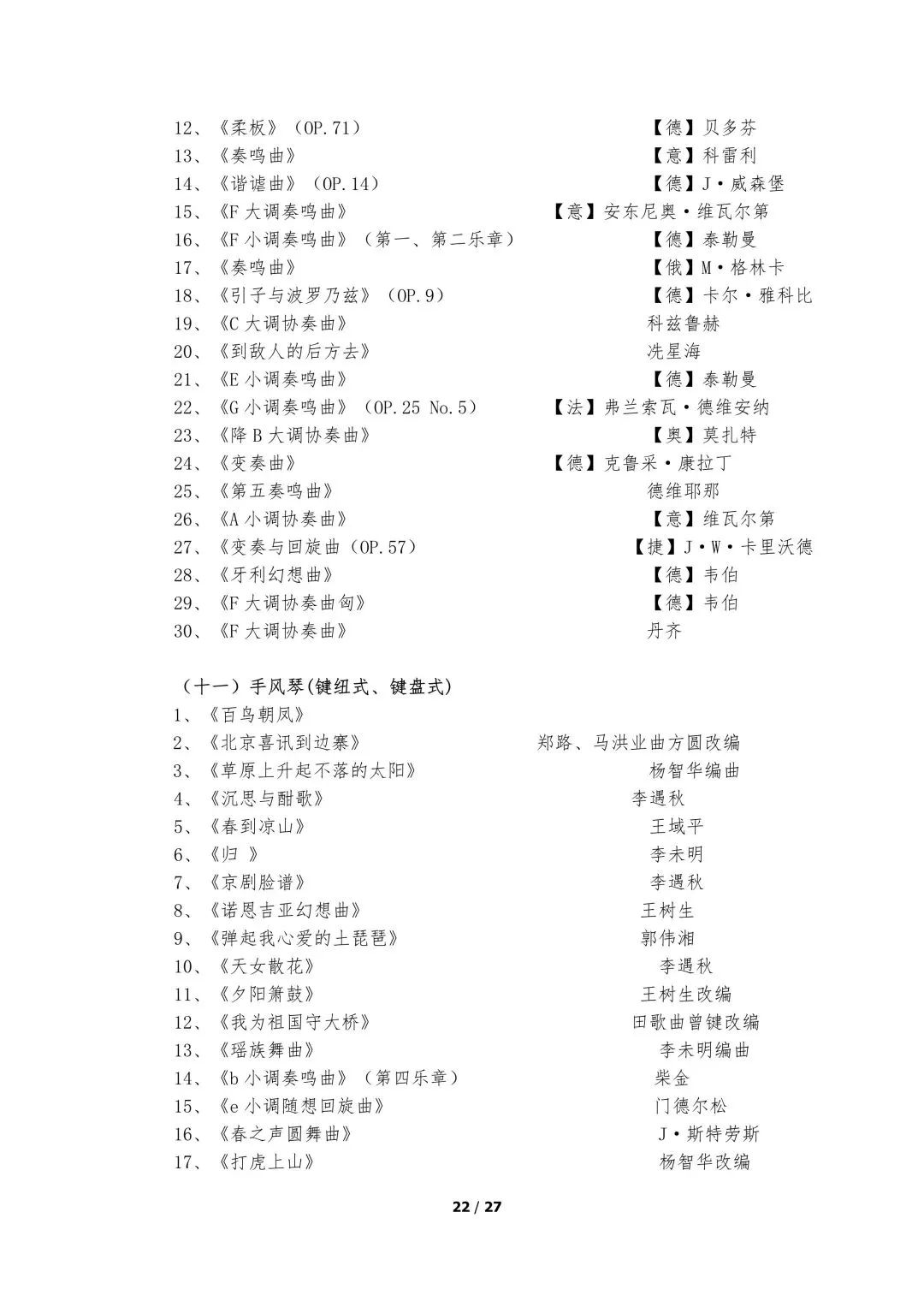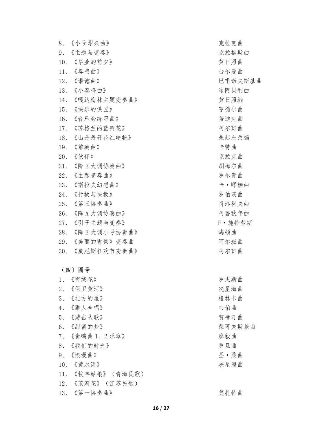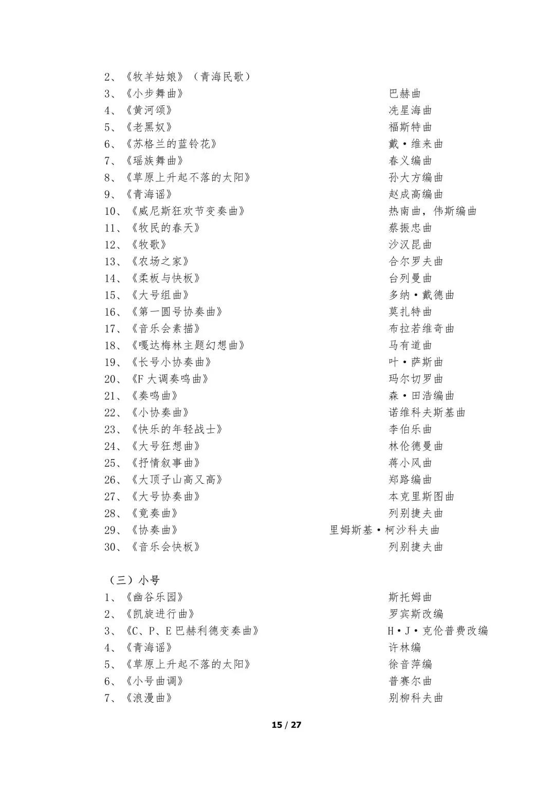 5.器乐类考试的面试考场备有钢琴,其他乐器考生自备。器乐演奏实行无伴奏演奏,要求背谱演奏。