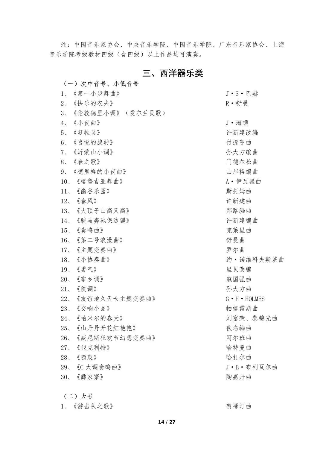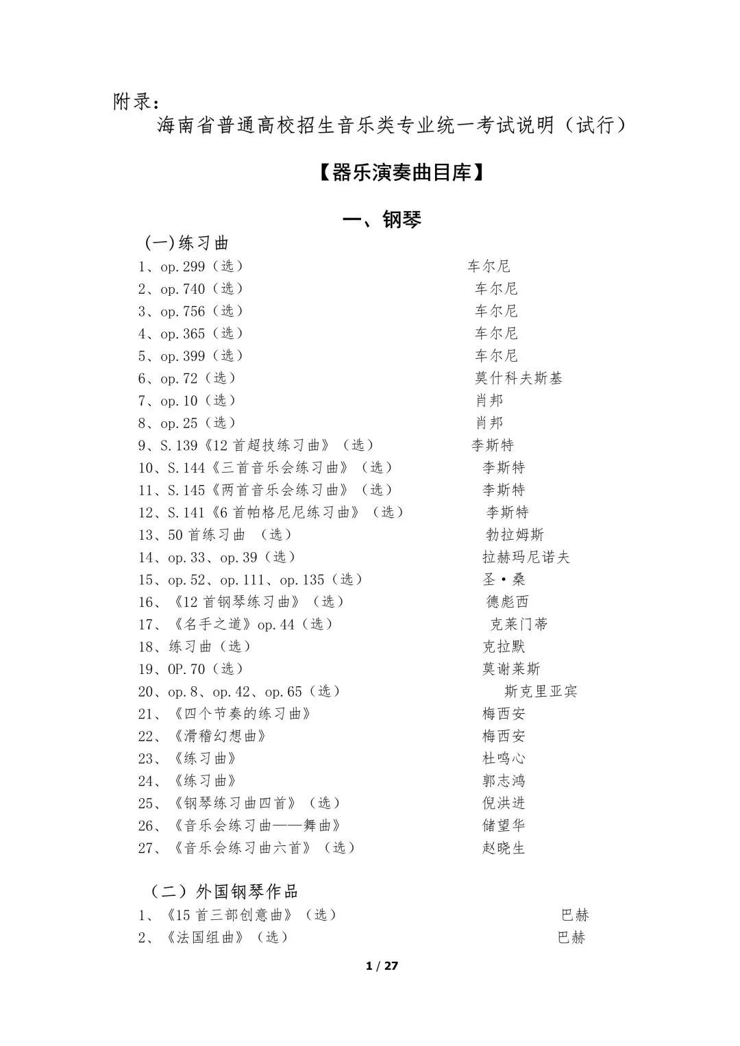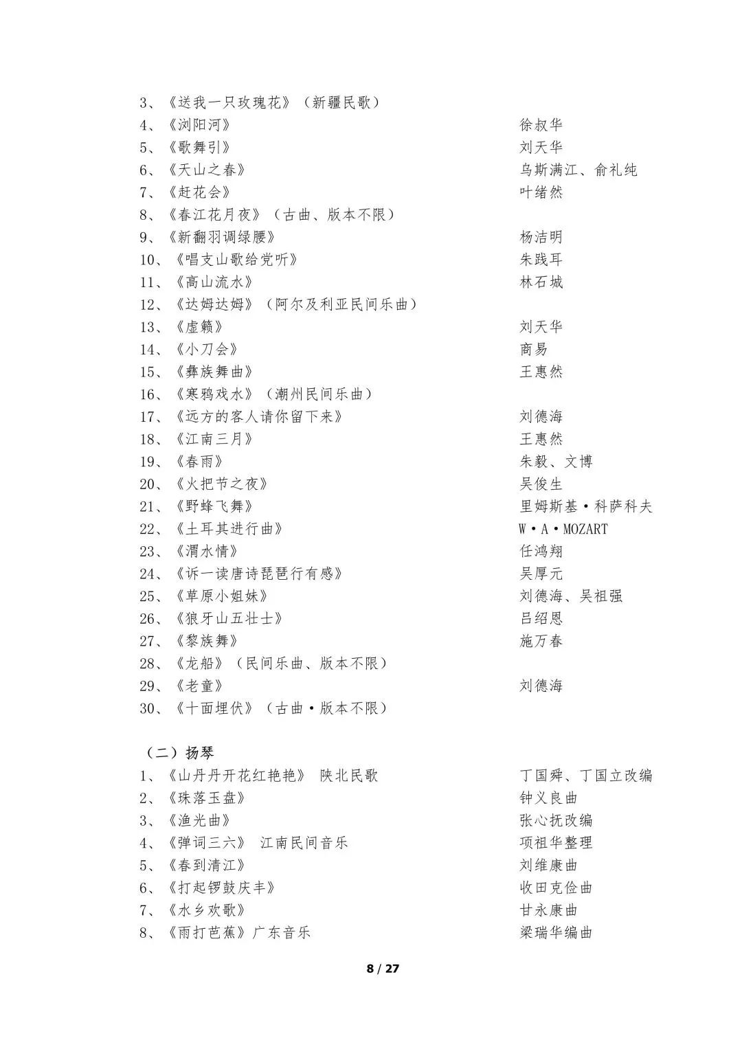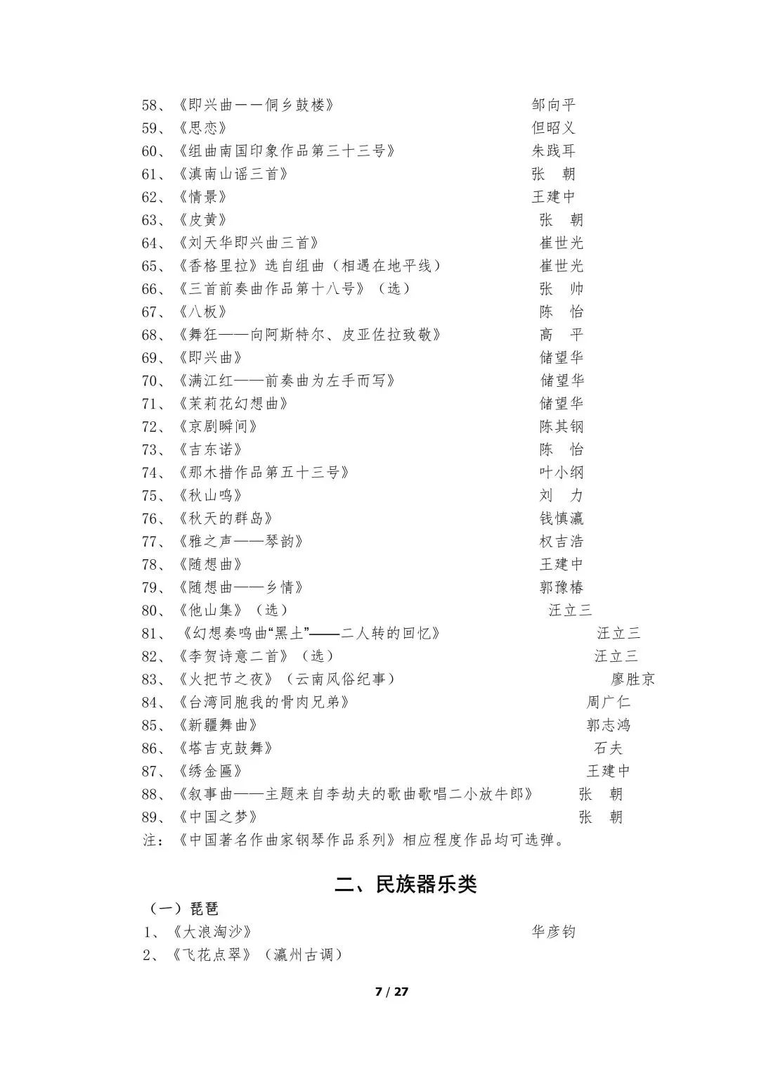 5.器乐类考试的面试考场备有钢琴,其他乐器考生自备。器乐演奏实行无伴奏演奏,要求背谱演奏。