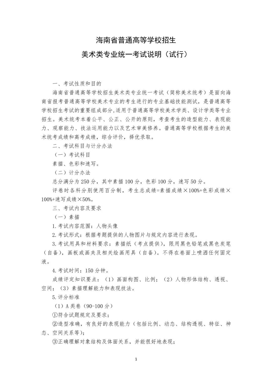 海南省普通高等学校招生艺术类专