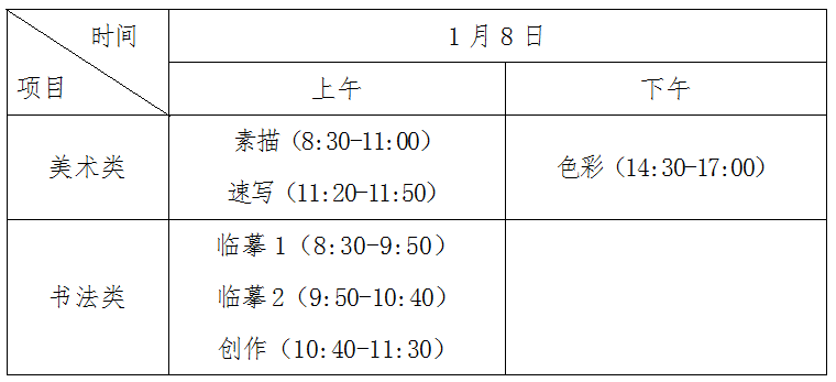6.书法类专业考试科目:临摹1、临摹2、创作。